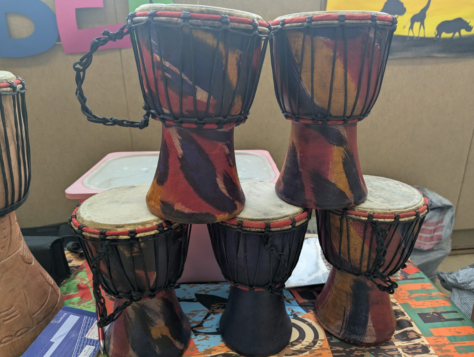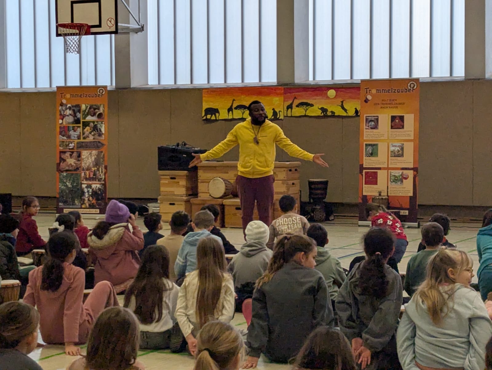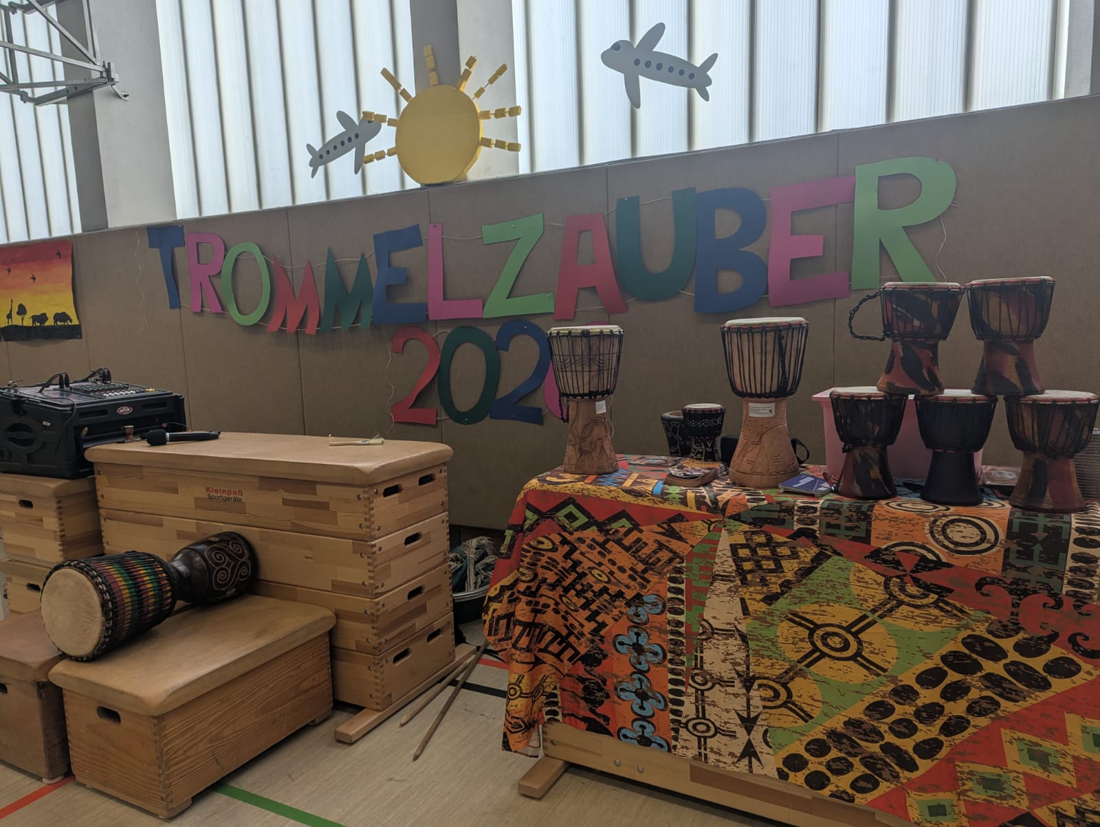 In den vergangenen Tagen erlebten unsere Kinder ein ganz besonderes musikalisches Projekt: Trommelzauber „Tambo Tambo“. Zu Beginn der Projektwoche lernen die Kinder, dass sie sich alle zusammen auf die Reise in das Trommelzauberdorf Tamborena begeben werden und dass sie sich in akfrikanische Tiere verwandeln werden.